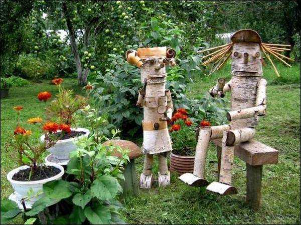 Широко используется изготовление разного рода фигурок из не обработанного бревна и специально подобранных веточек или корней. При творческом подходе природные «дикие» материалы можно удачно комбинировать с обработанным брусом или фанерой.