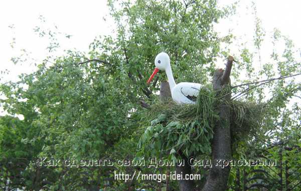 Аист — пенопласт подклеиваем с двух сторон на голове и на туловище, шпаклюем и шлифуем наждачной бумагой.