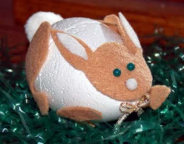 Так с его помощью можно смастерить прекрасных пасхальных барашков. Из пенопласта вырезается туловище барашка и его голова, это простые овальные формы, поэтому вырезать их не составит труда. Далее, при помощи штыря или клея они скрепляются. После чего вставляются деревянные ноги с копытцами из пластиковых бутылок.