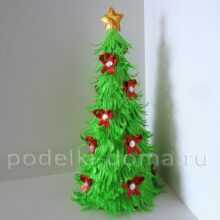 4. Когда клей высохнет, можете начать украшать елку, как вам больше нравится. Используйте ленты и бусины, например, на макушку елки можете приклеить бантик и звезду.