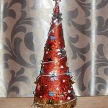 * Если хотите использовать ленту, то просто приклейте ее к конусу и сможете повесить на елку.