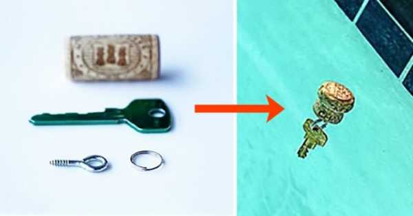 Подобная идея особенно будет полезна для любителей водного отдыха и лежания у бассейна, поскольку в случае падения в воду пробка не даст ключам утонуть. Но все же лучше сперва протестировать готовый брелок в стакане с водой.