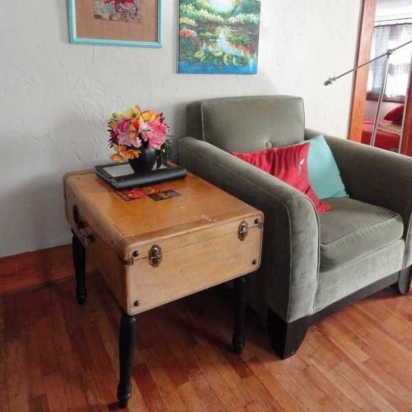 Одной из самых популярных вещей, которую можно сделать из старого чемодана, является прикроватный или придиванный столик. Из старого чемодана получится и оригинальная консоль, на которой хорошо будут смотреться предметы декора. Что еще сделать из старого чемодана.