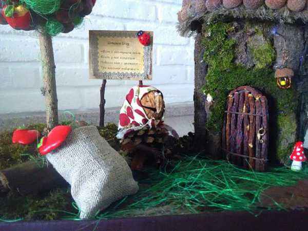 ΠΠΎΠΌΠ° ΠΌΠΎΠΆΠ½ΠΎ ΡΠ΄Π΅Π»Π°ΡΡ ΠΈΠ· ΠΊΠ°ΡΡΠΎΠ½Π½ΡΡ ΠΊΠΎΡΠΎΠ±ΠΎΡΠ΅ΠΊ Π½Π΅Π±ΠΎΠ»ΡΡΠΎΠ³ΠΎ ΡΠ°Π·ΠΌΠ΅ΡΠ° ΠΈΠ»ΠΈ ΠΏΡΠΎΡΡΠΎ ΡΠΊΠ»Π΅ΠΈΡΡ ΠΈΠ· ΠΊΠ°ΡΡΠΎΠ½Π° ΠΈ ΡΠ°Π·ΡΠΈΡΠΎΠ²Π°ΡΡ ΡΠ°ΡΠ°Π΄. ΠΠ΅ΡΠ΅Π²ΡΡ ΡΠ°ΠΊΠΆΠ΅ Π΄Π΅Π»Π°ΡΡΡΡ ΠΈΠ· ΠΊΠ°ΡΡΠΎΠ½Π° ΠΈΠ»ΠΈ, Π΅ΡΠ»ΠΈ Π΅ΡΡΡ Π² Π½Π°Π»ΠΈΡΠΈΠΈ, ΠΈΠ· ΠΏΠΎΠ΄Ρ ΠΎΠ΄ΡΡΠΈΡ ΠΏΡΠΈΡΠΎΠ΄Π½ΡΡ ΠΌΠ°ΡΠ΅ΡΠΈΠ°Π»ΠΎΠ². Π’ΡΠ°Π²Ρ ΠΌΠΎΠΆΠ½ΠΎ ΠΈΠ·ΠΎΠ±ΡΠ°Π·ΠΈΡΡ Π·Π΅Π»Π΅Π½ΠΎΠΉ Π±ΡΠΌΠ°Π³ΠΎΠΉ ΠΈΠ»ΠΈ ΠΌΠ΅Π»ΠΊΠΎ Π½Π°ΡΠ΅Π·Π°ΡΡ Π½ΠΈΡΠΊΠΈ Π·Π΅Π»Π΅Π½ΠΎΠ³ΠΎ ΡΠ²Π΅ΡΠ° ΠΈ ΠΏΡΠΈΠΊΠ»Π΅ΠΈΡΡ ΠΈΡ Π½Π° ΡΠΌΠ°Π·Π°Π½Π½ΡΡ ΠΊΠ»Π΅Π΅ΠΌ ΠΏΠΎΠ²Π΅ΡΡ Π½ΠΎΡΡΡ. Π€Π°ΠΊΡΡΡΡ Π³ΡΡΠ½ΡΠ° Π½Π΅ΡΠ»ΠΎΠΆΠ½ΠΎ ΡΠΎΠ·Π΄Π°ΡΡ Π½Π°ΠΊΠ»Π΅Π΅Π½Π½ΠΎΠΉ ΠΊΡΡΠΏΠΎΠΉ ΠΈΠ»ΠΈ