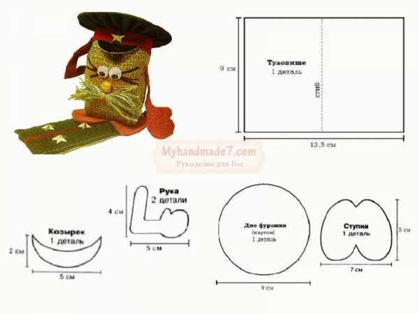 ΠΠ΅Π½Ρ 23 ΡΠ΅Π²ΡΠ°Π»Ρ β ΠΏΠΎΠ΄Π΅Π»ΠΊΠΈ, ΡΠ²ΡΠ·Π°Π½Π½ΡΠ΅ Ρ Π°ΡΠΌΠΈΠ΅ΠΉ ΠΈ ΡΠ»ΠΎΡΠΎΠΌ: ΠΊΠΎΡΠ°Π±Π»ΠΈ, ΡΠ°ΠΌΠΎΠ»Π΅ΡΡ, ΡΠ°Π½ΠΊΠΈ. Π Π΄Π»Ρ ΠΎΠ±ΠΎΠΈΡ ΠΏΡΠ°Π·Π΄Π½ΠΈΠΊΠΎΠ² β ΠΏΠΎΠ·Π΄ΡΠ°Π²ΠΈΡΠ΅Π»ΡΠ½ΡΠ΅ ΠΎΡΠΊΡΡΡΠΊΠΈ. ΠΠ½ΡΠ΅ΡΠ΅ΡΠ½ΡΡ ΠΏΠΎΠ΄Π΅Π»ΠΊΡ ΠΊ 23 ΡΠ΅Π²ΡΠ°Π»Ρ ΠΌΠΎΠΆΠ½ΠΎ ΠΈΠ·Π³ΠΎΡΠΎΠ²ΠΈΡΡ ΠΈΠ· ΠΌΠ΅ΡΠΊΠΎΠ²ΠΈΠ½Ρ ΠΈ ΡΠΊΠ°Π½ΠΈ. ΠΠΎΠ½Π΅ΡΠ½ΠΎ, Π±Π΅Π· ΠΏΠΎΠΌΠΎΡΠΈ ΡΠΎΠ΄ΠΈΡΠ΅Π»Π΅ΠΉ ΡΡΡ Π½Π΅ ΠΎΠ±ΠΎΠΉΡΠΈΡΡ. ΠΠ»Ρ ΡΠ°ΡΠΊΡΠΎΡ Π΄Π΅ΡΠ°Π»Π΅ΠΉ Π²ΠΎΡΠΏΠΎΠ»ΡΠ·ΡΠΉΡΠ΅ΡΡ Π²ΡΠΊΡΠΎΠΉΠΊΠΎΠΉ. Π’ΡΠ»ΠΎΠ²ΠΈΡΠ΅ Π΄Π΅Π»Π°ΡΡ ΠΏΠΎ ΠΏΡΠΈΠ½ΡΠΈΠΏΡ ΠΌΠ΅ΡΠΎΡΠΊΠ° ΠΈΠ· ΠΌΠ΅ΡΠΊΠΎΠ²ΠΈΠ½Ρ, ΡΠΎΠ»ΡΠΊΠΎ Π½ΡΠΆΠ½ΠΎ Π±ΡΠ΄Π΅Ρ Π·Π°ΡΡΡΠΎΡΠΈΡΡ Π½ΠΈΠΆΠ½ΠΈΠ΅ ΡΠ³Π»Ρ, ΡΡΠΎΠ±Ρ ΠΏΠΎΠ΄Π΅Π»ΠΊΠ° ΡΡΠ°Π»Π° ΡΡΡΠΎΠΉΡΠΈΠ²ΠΎΠΉ. ΠΠΎΡΠ»Π΅ Π½Π°Π±ΠΈΠ²ΠΊΠΈ ΡΠΈΠ½ΡΠ΅ΠΏΠΎΠ½ΠΎΠΌ ΠΈΠ»ΠΈ Ρ ΠΎΠ»Π»ΠΎΡΠ°ΠΉΠ±Π΅ΡΠΎΠΌ Π²Π΅ΡΡ Π½ΡΡ ΡΠ°ΡΡΡ ΠΌΠ΅ΡΠΎΡΠΊΠ° ΡΡΡΠ½ΠΈΡΠ΅ Π½Π° Π½ΠΈΡΠΊΡ.
