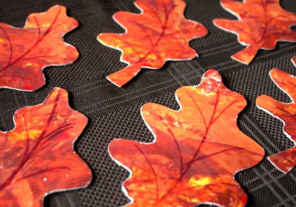 ΠΡΡΠ΅Π·Π°Π΅ΠΌ ΠΈΠ· ΡΠ²Π΅ΡΠ½ΠΎΠΉ ΠΈΠ»ΠΈ ΠΎΠ±ΡΡΠ½ΠΎΠΉ Π±ΡΠΌΠ°Π³ΠΈ ΠΎΡΠ΅Π½Π½ΠΈΠ΅ Π»ΠΈΡΡΡΡ ΠΈ ΠΏΡΠΈ ΠΏΠΎΠΌΠΎΡΠΈ ΡΠ»ΠΎΠΌΠ°ΡΡΠ΅ΡΠΎΠ² ΠΈΠ»ΠΈ Π³Π΅Π»ΠΈΠ΅Π²ΡΡ ΡΡΡΠ΅ΠΊ Π½Π°Π½Π΅ΡΠΈΡΠ΅ ΡΠ²ΠΎΠΉ ΡΠΎΠ±ΡΡΠ²Π΅Π½Π½ΡΠΉ ΡΠ·ΠΎΡ.