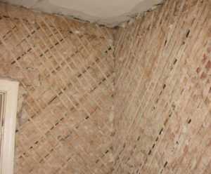 Штукатурку на кирпичной кладке и гипсовой стене лучше сбить для обеспечения безопасности. Подготовка под штукатурку кирпичных стен допускает такие моменты, при которых можно оставить некоторые участки не зачищенными. Если отделка на стенах держится крепко, можно зачистить лишь те места, где она держится слабо.
