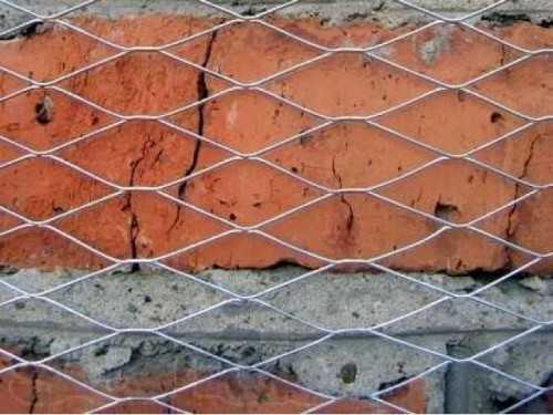 Кирпич, бетон, камень или металл имеют разную плотность и скорость высыхания штукатурки на них разная. Чтобы избежать появления трещин на оштукатуриваемых откосах, углах и прочих местах сопряжения разных поверхностей, эти участки лучше проармировать нержавеющей металлической сеткой. Диаметр проволочной сетки 1,5-2 мм, размер ячеек – 30х30 мм, ширина полосы сетки – не менее 20 см.