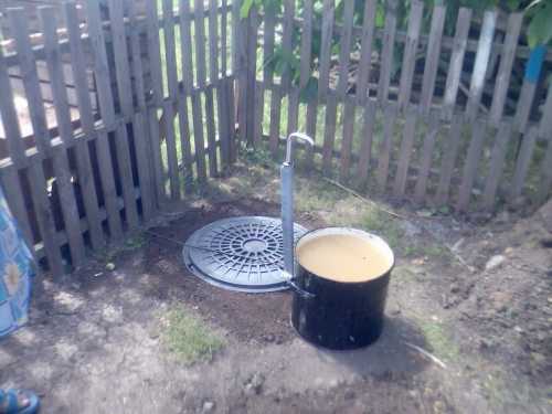 Конструкция из бетонных колец с крышкой под люк