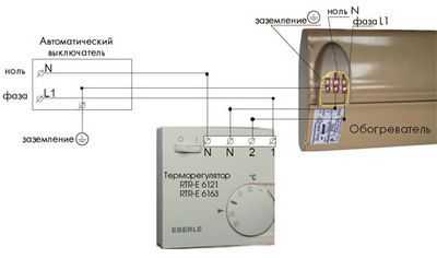 Схема подключения терморегулятора к инфракрасному обогревателю