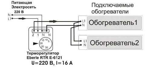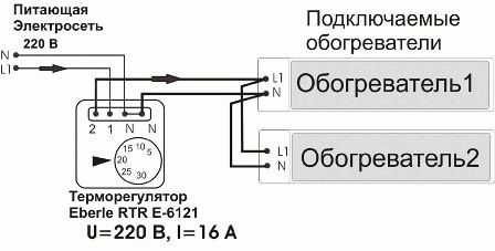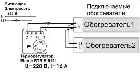 Подключение двух обогревателей к термостату