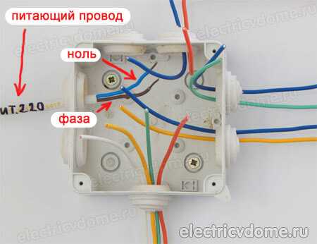 - фазная жила сетевого провода соединяется с жилой, идущей на вход выключателя;
