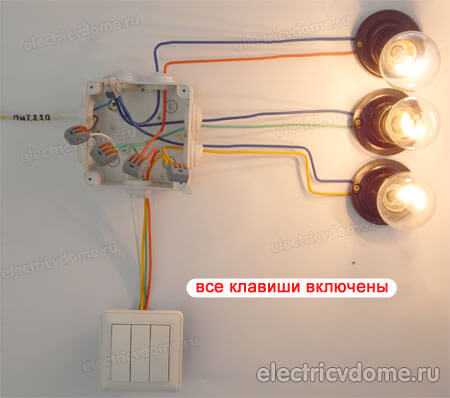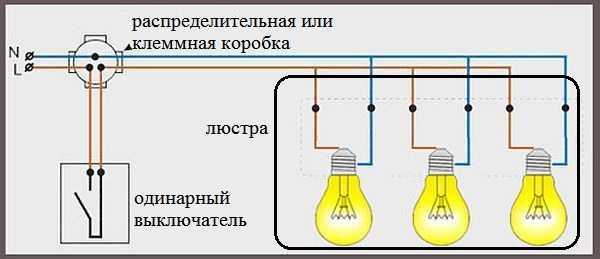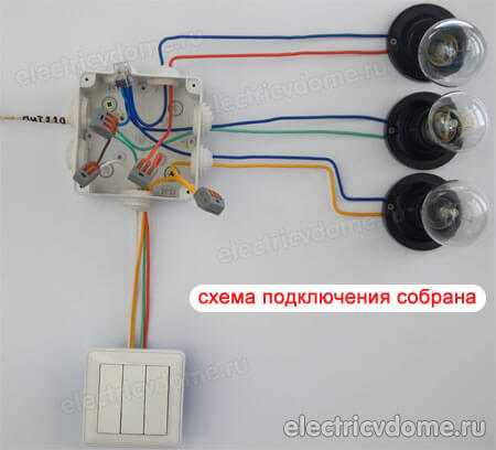Подключение трех светильников на один выключатель – Схемы подключения трех ламп и более
