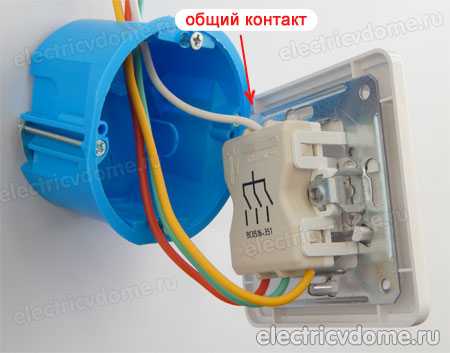 Один из питающих кабелей подключается на вход выключателя, а кабеля осветительных приборов подключаются к выходным контактам (к соответствующим контактам коммутационной колодки).