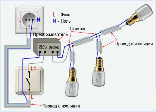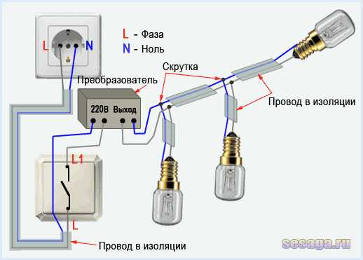Схема подключения точечных светильников на 12 В с персональным трансформатором