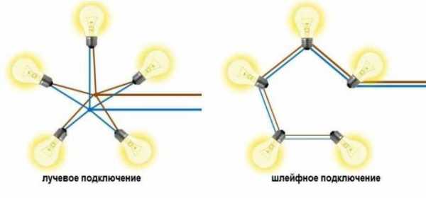 Лучевая схема подключения более надежна — если проблемы случаются, то не горит только эта лампочка. Есть два минуса. Первый — большой расход кабеля. С ним можно смириться, так как делается проводка один раз и надолго, а надежность такой реализации высокая. Второй минус — в одной точке сходится большое количество проводов. Качественное их соединение — непростая задача, но решаемая.