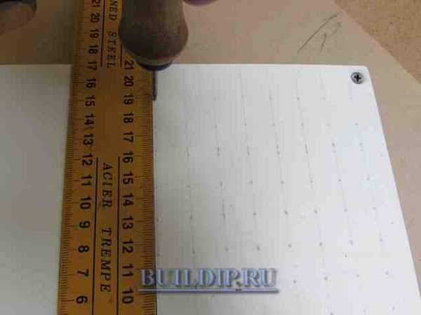 Переворачиваем рейку и проводим по 2 одинаковые линии к каждой дырке.
