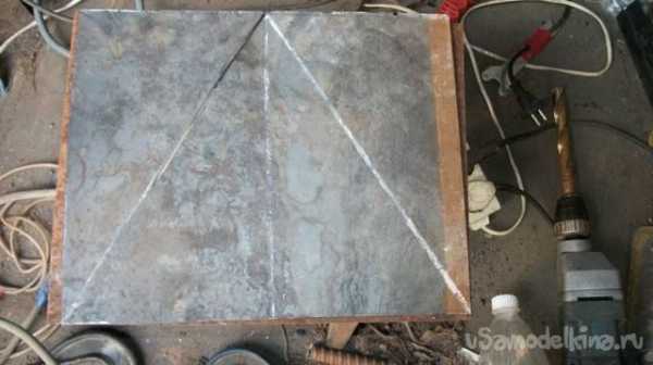 Для укосин(рёбер жёсткости) опор из трёхмиллиметрового железа были вырезаны треугольники.
