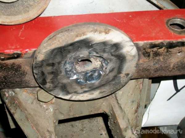 С другой стороны поперечины в районе центрального отверстия приварил шайбу на которую будет опираться подкатной домкрат.