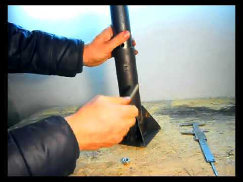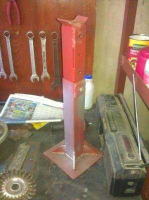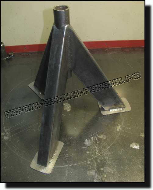 Все гуд. Но! Надо делать косынки или же боковые упоры. Такой тип упора хорошо применять когда поверхность под ним ровная. Если кто-то будет делать, то лучше делать трёхножку. И ещё, вместо трубы применять профильную трубу, т.к. она не проворачивается и отверстия для фиксации не уходят в бок (удобнее).