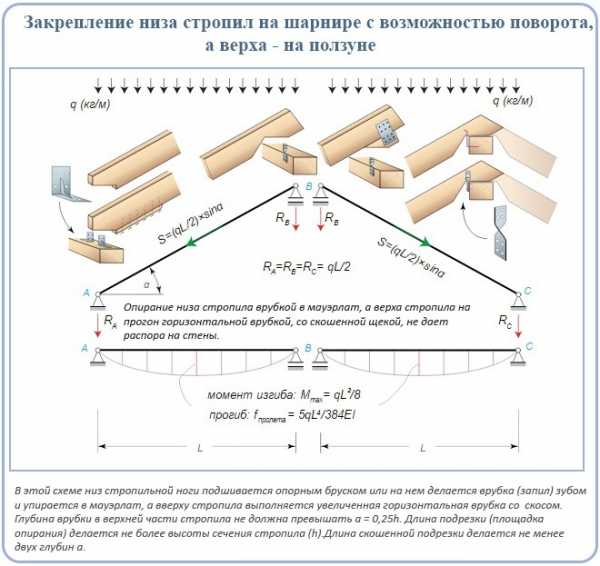 Жёсткое крепление стропильных ног используется в системе наслонных стропил