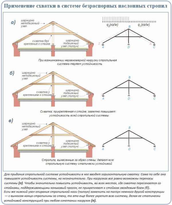 Для придания стропильной системе устойчивости в нее вводят горизонтальную схватку.