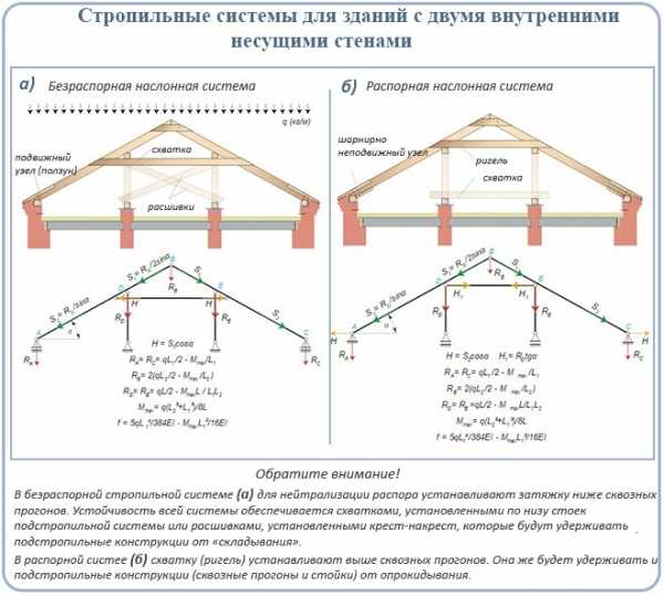Рисунок 97.Стропильная система для зданий с двумя внутренними несущими стенами.