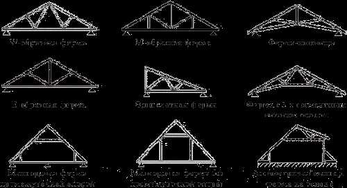 Элементы используемой стропильной системы могут изготавливаться из различных материалов, это не только традиционное дерево, но и металл, железобетон. Сами фермы могут принимать три формы: полигональную, с параллельными поясами, треугольную. Для мягких кровельных материалов достаточно полигональных и с параллельными поясами, а вот для листовых лучше конструировать треугольные фермы.