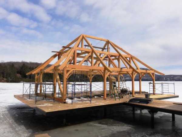 Хорошая альтернатива металлическим конструкциям — стропила из дерева. Они максимально просты в монтаже и могут собираться непосредственно на объекте. Чаще всего для устройства системы используется сосновый брус с сечением 150х150 мм. Вполне подойдут доски размером 50х150 мм.