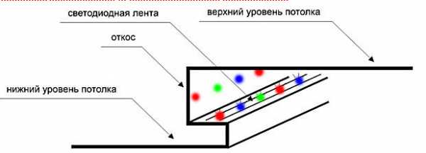 Как выполняется подсветка натяжного потолка светодиодной лентой