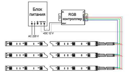 - От готовой системы необходимо вывести провода, при помощи которых будет осуществляться подключение к контроллеру и блоку питания. Сначала система подключается к контроллеру, а уже он – к блоку питания. Протестируйте готовую систему на работоспособность.