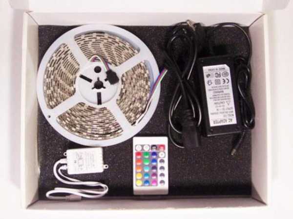 Вы можете приобрести готовую ленту нужной длины с блоком питания или же собрать цепь самостоятельно, предварительно высчитав необходимую мощность блока питания, исходя из длины ленты.