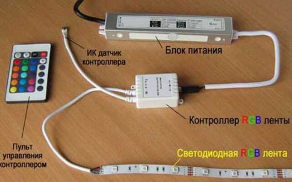 Иногда ленты продаются без светового шнура. Его можно купить отдельно и подключить к блоку питания, присоединив его к контактам N и L. Затем к блоку подключают контроллер. Его используют для разноцветной ленты типа RGB.