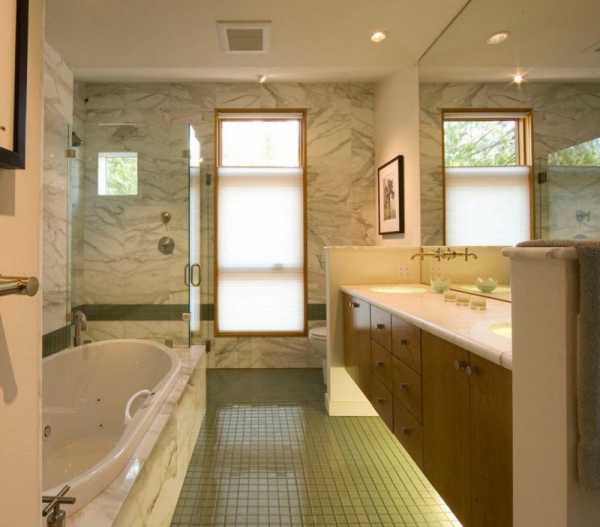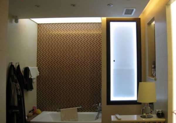 В качестве интересного варианта освещения в ванной комнате, выступает ложное окно с декоративной подсветкой. При ярком освещении, неплохим вариантом будет декорирование ванной комнаты керамической либо зеркальной плиткой. Если точечные светильники подобраны правильно, они не просто будут источником света, но и помогут создать разнообразные зрительные иллюзии, скрывающие либо подчеркивающие изюминки интерьера.