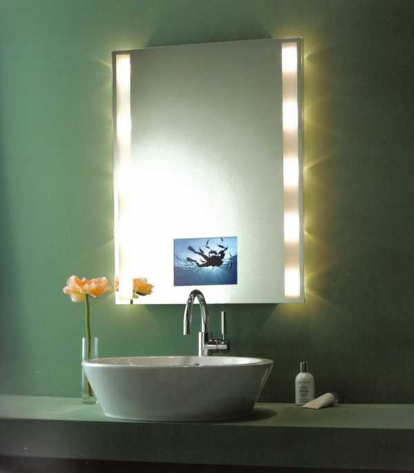 Если уж запланировано в ванной светодиодное вспомогательное освещение, то обойти вниманием зеркало никак нельзя. Светильники, расположенные вокруг этого элемента не только интерьер украсят, но и сделают его использование более удобным. Для светодиодной подсветки зеркала обычно используется лента, одно- или многоцветная, подходящей длины.