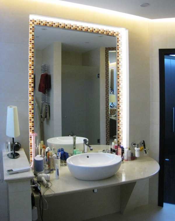 Подсветка зеркала может быть выполнена как с помощью точечных светодиодов, так и с использованием Led-ленты, а также путем комбинирования этих методов