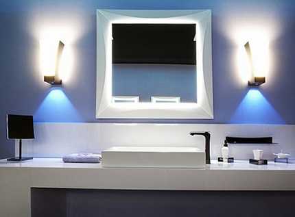 Выбор места установки в ванной комнате светильника должен быть тщательным, так как такая подсветка продемонстрирует все мельчайшие недостатки стен в данном помещении.