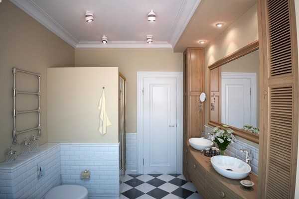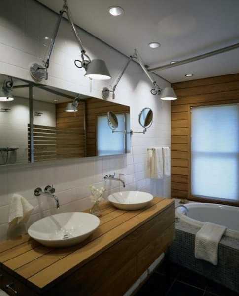 Даже если в ванной комнате присутствует естественное освещение, дополнительные осветительные приборы должны присутствовать здесь в таком количестве, чтобы и в темное время суток помещением было приятно и удобно пользоваться