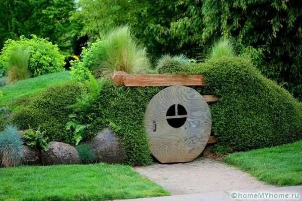Отдельно расположенный погреб может стать частью дизайнерского замысла, гармонично дополнить стилевое направление садового участка.