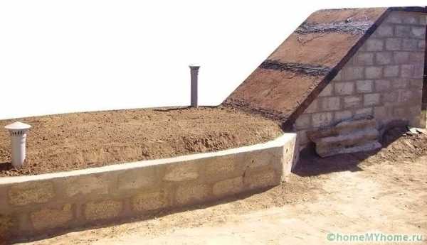 В качестве «подушки» используйте песчано-гравийную смесь. А перекрытия можно сделать из бетонных плит, арматуры, досок. Наружную изоляцию можно произвести при помощи гудрона, которым покрывают боковые стороны погреба. Также стены можно покрыть рубероидом, который укладывают на соответствующую мастику. - Возводя погреб своими руками следует помнить, что при выкладке рядов нужно оставлять ниши для вентиляционных отверстий (труб). Стены выкладываются до самого верха ямы, все стороны должны быть на одинаковом уровне.
