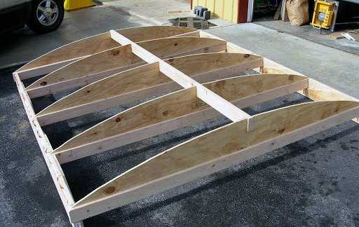 - На балочные бруски прибивается деревянный настил, в котором нужно не забыть оставить люк.