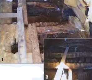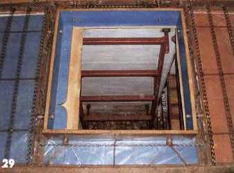 - Одним из основных моментов является установка перекрытий. Перекрытия могут быть разного типа, наиболее простым методом является укладка бетонных плит сверху. Для комбинированных перекрытий используются балочные бруски, деревянные настилы, рубероид, арматурные решётки, гидроизоляционные материалы. Полученная конструкция по окончанию работ заливается бетоном.
