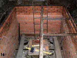 - Теперь выполняем возведение стен. При использовании кирпича кладка может выполняться как цементным раствором, так и смесью из глины и песка. Важную роль при возведении стен играет обустройство гидроизоляции, если она будет использоваться как прослойка между земляными стенами и кладкой.