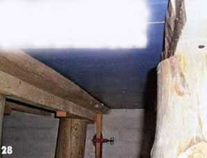 - Сначала на стены и сам грунт аккуратно укладывается рубероид, на который сверху кладутся бруски. Они нужны в качестве балок для перекрытий.