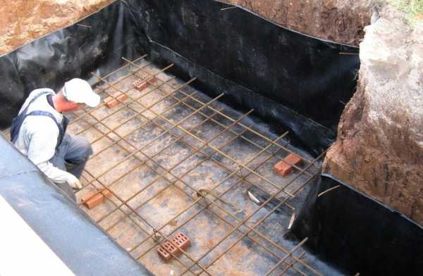 - Поверх настила укладываем гидроизоляционный материал, при этом он должен заходить за грунт.