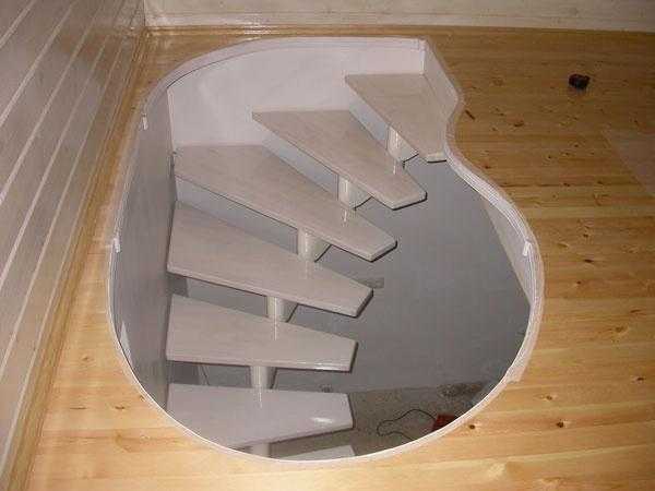 Лестница может быть прямой, поворотной, винтовой или приставной – всё зависит от индивидуального дизайна погреба или подвала, а также от ваших предпочтений. Лестница должна быть крепкой, надёжной, желательно иметь перила. Толщина ступеней напрямую зависит от ширины поступи.
