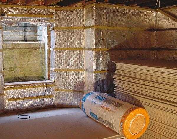 - Между стеной и засыпкой можно уложить в один слой рубероид – он станет надежной защитой от влаги.