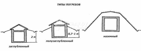 Существует три основных типа погребов: наземный, заглубленный, полузаглубленный. Почва с высоким уровнем прохождения вод может стать основным препятствием для возведения классического погреба. Именно в таких случаях рекомендуется выбор полузаглубленного или наземного вида хранилища.