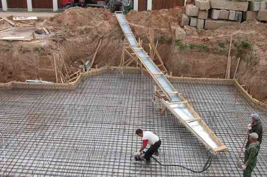 При неглубоком залегании грунтовых вод, а также для большей надежности в целом, лучше сначала залить подошву из качественного железобетона: