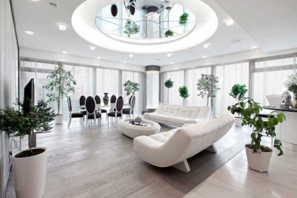 Цвет натяжных потолков в гостиной